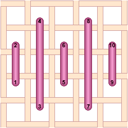 The Tent Stitch can also be worked vertically. Chequer Stitch is alternating blocks of diagonal Satin Stitch and Tent Stitch. Scotch Stitch worked horizontally. Look at the Mosaic and Cashmere stitches to get an idea of how to work this stitch diagonally or to stitch the condensed version. Mosaic Stitch can be filled in either horizontally... or theMosaic Stitch can be filled in diagonally. Condensed Mosaic Stitch Cashmere Stitch is sort of a squished Scotch Stitch. Cashmere Stitch Condensed Cashmere Stitch Kelim Stitch