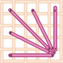 Parisian Stitch Ray Stitch The Tent Stitch is usually worked diagonally. Sometimes refered to as Basketweave Tent Stitch. However the Tent Stitch can also be worked horizontally. Sometimes called Continental Tent Stitch. The Tent Stitch can also be worked vertically. Chequer Stitch is alternating blocks of diagonal Satin Stitch and Tent Stitch. Scotch Stitch worked horizontally. Look at the Mosaic and Cashmere stitches to get an idea of how to work this stitch diagonally or to stitch the condensed version. Mosaic Stitch can be filled in either horizontally... or theMosaic Stitch can be filled in diagonally. Condensed Mosaic Stitch Cashmere Stitch is sort of a squished Scotch Stitch. Cashmere Stitch Condensed Cashmere Stitch Kelim Stitch