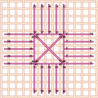 Pulled Thread stitches are different from all others. In most embroidery you want to avoid pulling your floss so tight that it distorts or moves the canvas/fabric threads. In Pulled Thread work, however, it is the distortion of the canvas which you are trying to achieve. In fact often Pulled Thread work is done as white on white work and displayed with a contrasting fabric placed behind. It can be the holes created by the stitches more than the stitches themselves that are to be appreciated.